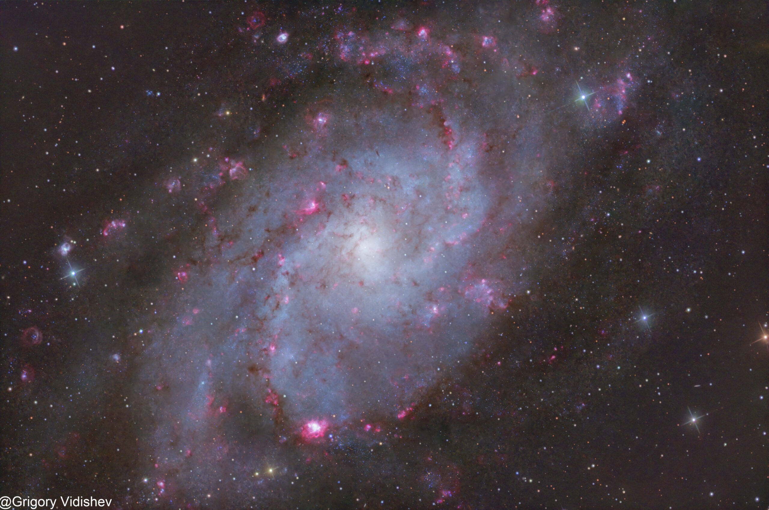 | Target Basic Information | M33, Triangulum Galaxy; Total exposure time- 17 hours 20 minutes 0 seconds; filters used- LRGBHa; 37.90GB in 208 calibrated subframes |